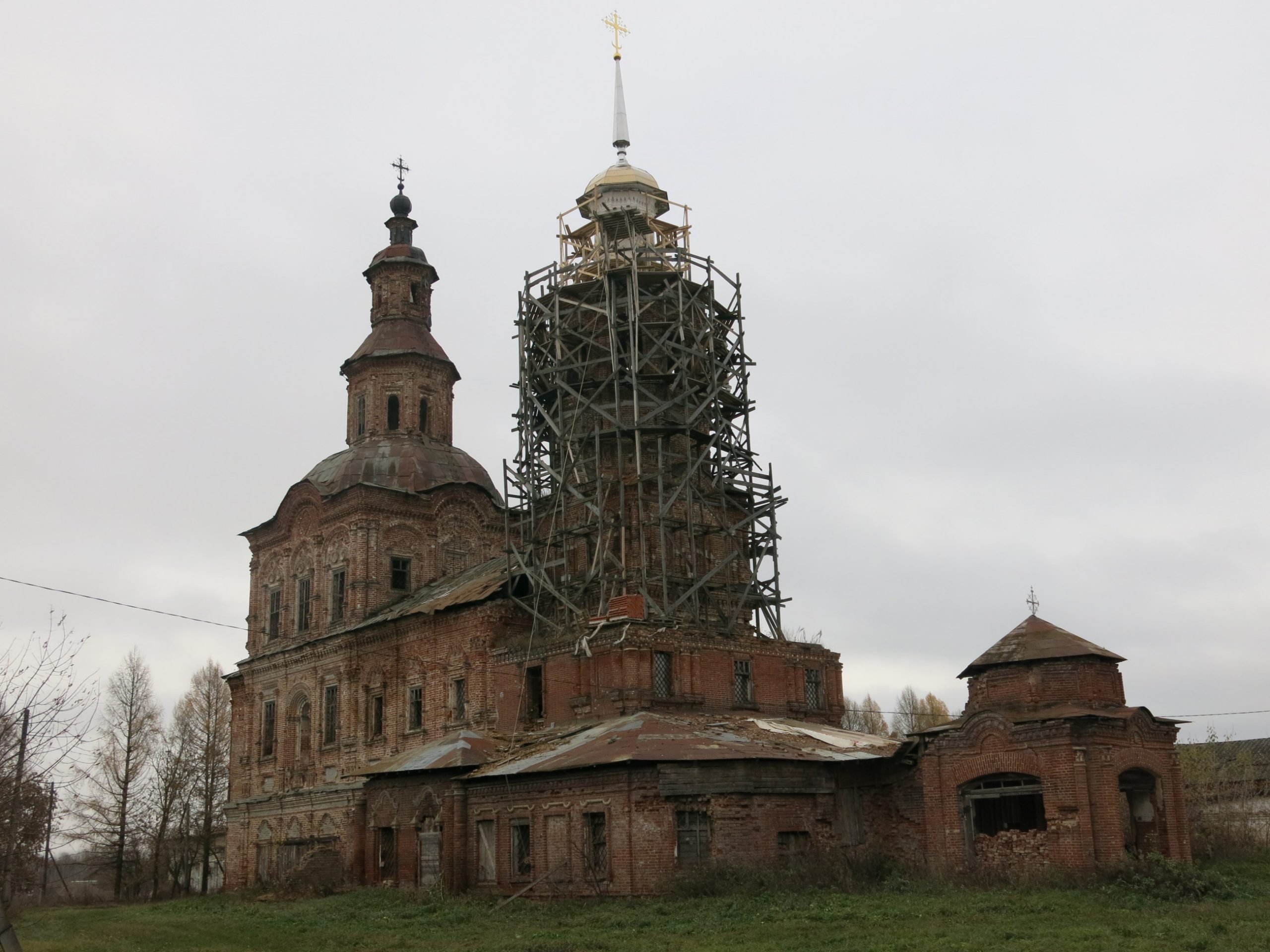 Прямоугольный в основе контур наружных стен церкви нарушается развитой в пространстве западной частью 1 этажа – результат расширении храма в начале ХХ века. Колокольня типа восьмерик на четверике завершена шпилем на восьмигранном барабане. Основной объем церкви построен в формах барокко мастерами из Великого Устюга в 1764–1768 гг., расширение на уровне первого и частично второго этажа производилось в 1909–1914 гг. (арх. И. А. Чарушин).